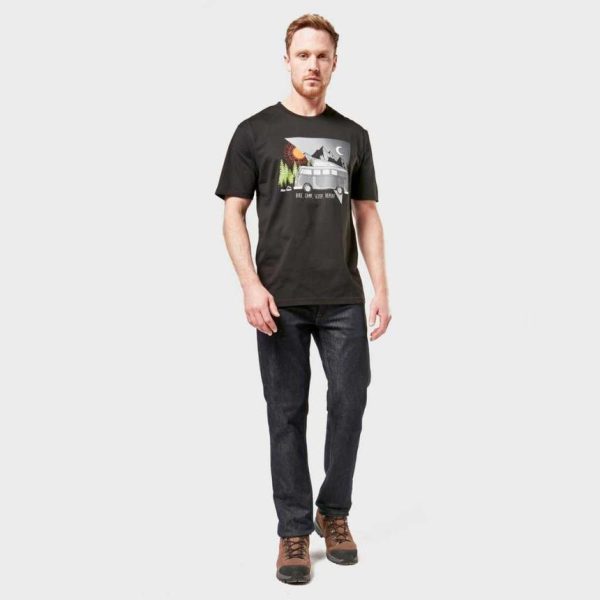 A crew neck casual short sleeved t-shirt made from super soft cotton and featuring a cool camper van print on the front.